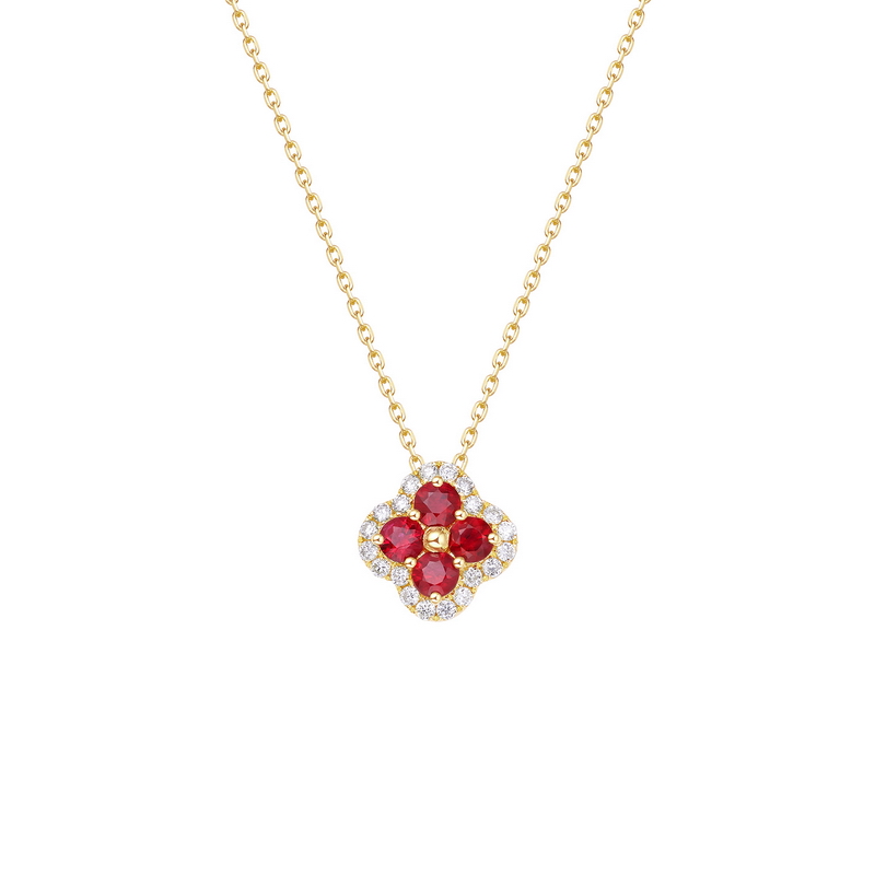 四叶草红宝石钻石吊坠