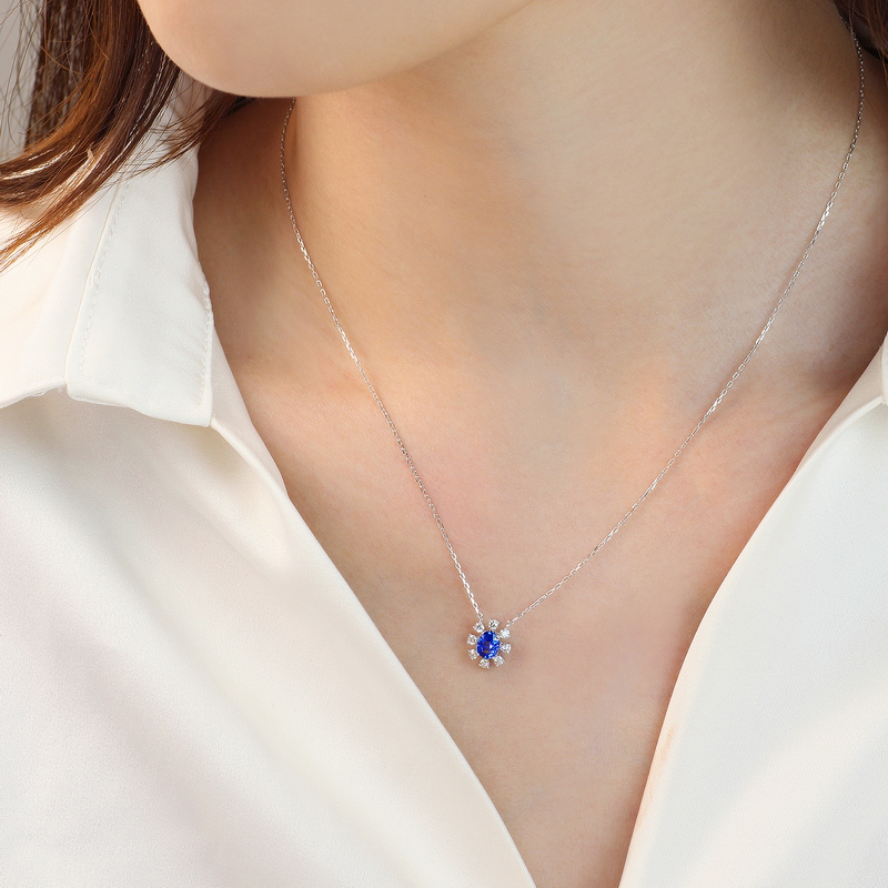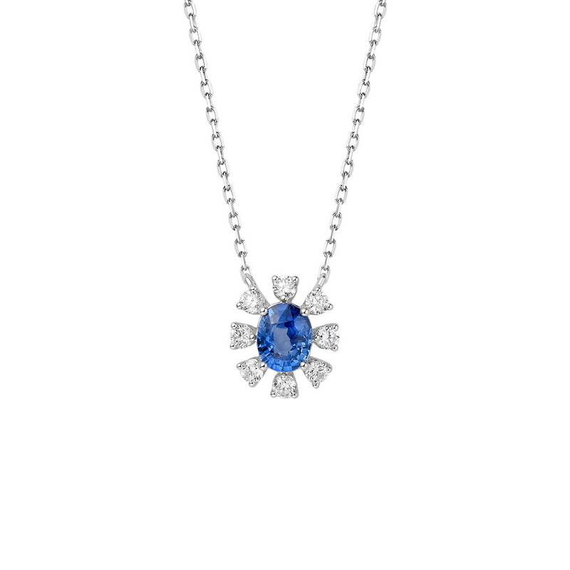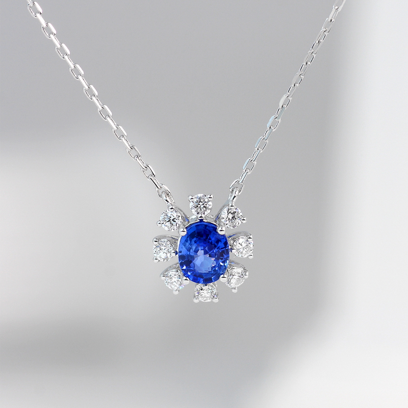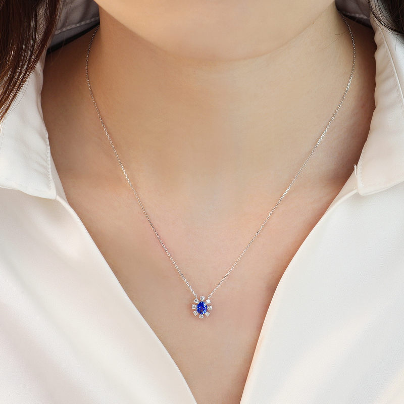 | WS10054P | 可选择18K金或铂金 | 蓝宝石45分,钻石共17分 | 约2克(18K金) | 吊坠宽约8.1mm,高约9mm,链长45cm可调节 | 中国GTC |