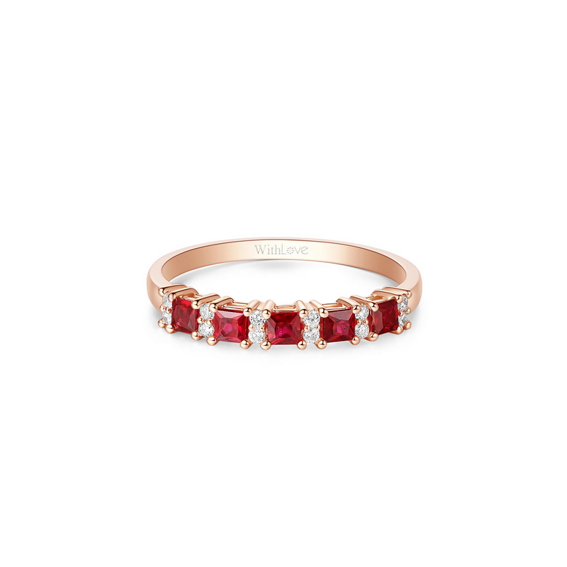 | WRU10025R | 可选择18K金或铂金 | 红宝石共38分,钻石共8分 | 约1.9克(18K金) | 戒圈宽约3mm | 中国GTC |