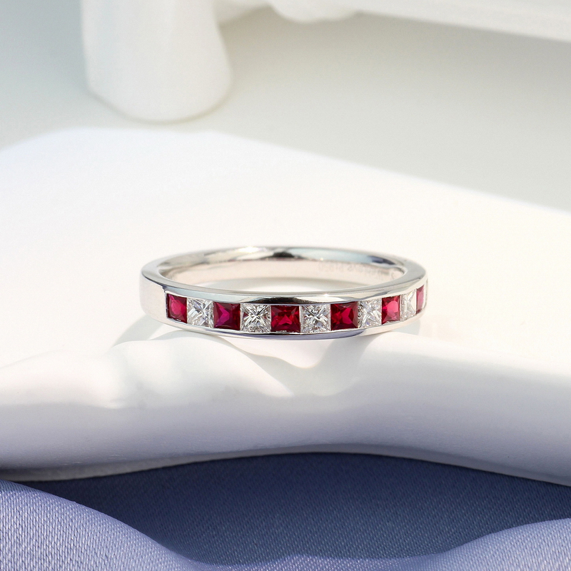 | WRU10040R | 可选择18K金或铂金 | 红宝石共35分,钻石共30分 | 约2.5克(18K金) | 戒指宽约3.2mm | 中国GTC |